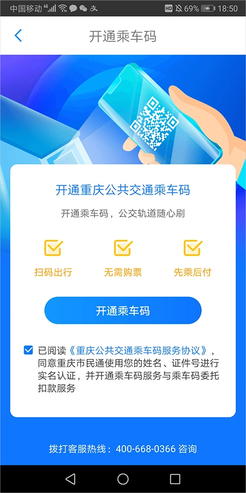 最后同意服务协议并点击【开通乘车码】即可