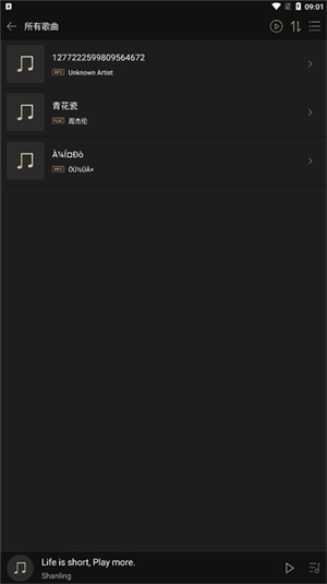 扫描完成的音乐资源会自动添加到“所有歌曲”列表中,这样我们就能直接点击对应的歌曲进行播放了。