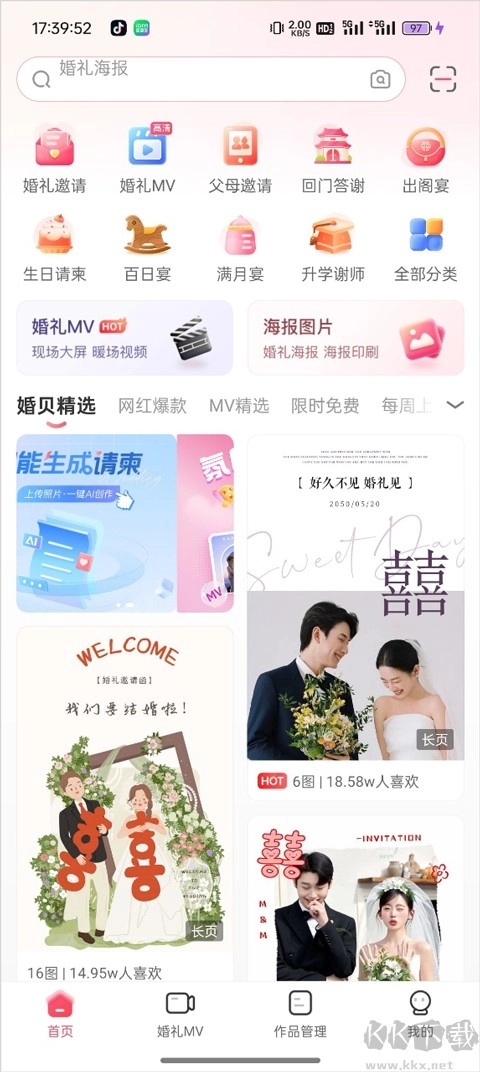 婚贝电子请柬是一款专业的电子请柬制作工具,用户可以在软件内对请柬进行个性化设计与修改,平台提供海量免费素材供选择使用,让你的请柬呈现出动感灵动的视觉效果。一份精美的请柬不仅能让发送者感到愉悦,还能向收柬人传递这份喜悦之情。