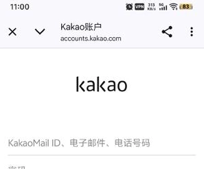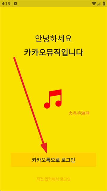 启动KakaoMusic应用后,进入登录页面,找到界面下方的Kakao账号登录选项并点击。