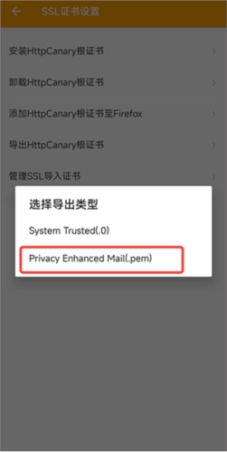 导出类型选择下面这个(.pem)【我这里是未root环境,所以选.pem;要是root之后有更高要求的话,可以选.0】