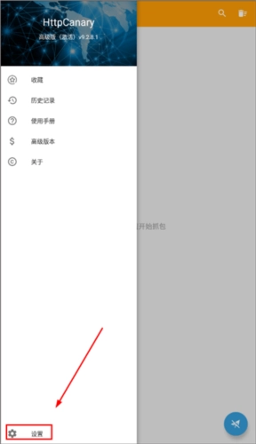 若要捕获HTTPS流量数据包,需先安装CA证书,第一步是点击界面左上角的扩展功能图标。