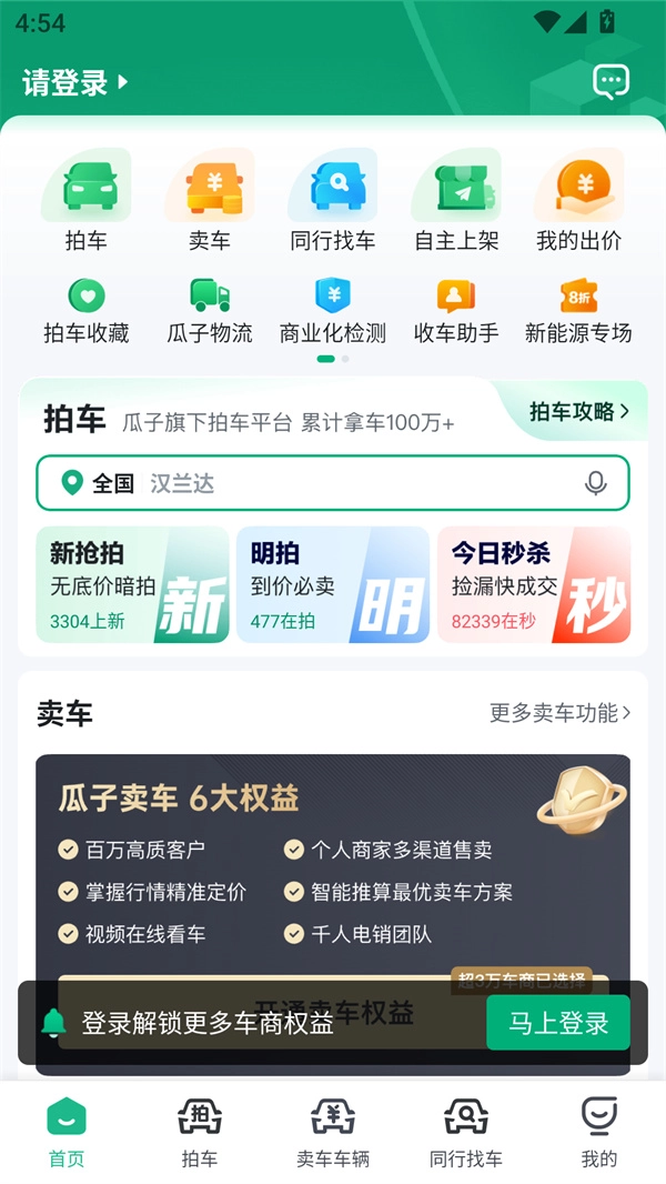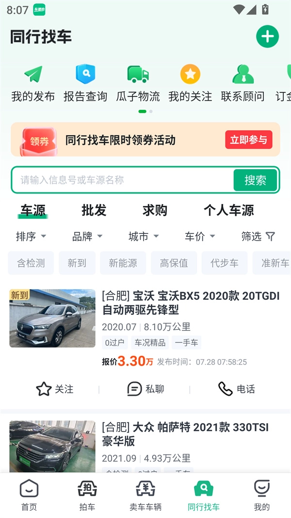 进入“拍车”板块,既能浏览平台每日上新的车辆,也可对心仪车型发起竞拍。