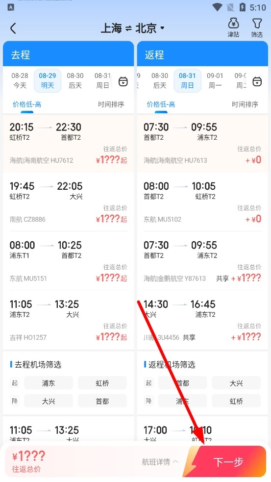 订票时巧用筛选功能:查询往返航班时,可灵活设置价格、时间、航空公司等筛选条件,快速筛选出符合需求的航班组合,既能简化订票流程,又能精准找到心仪的航班。