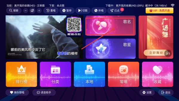 启动K歌软件后,找到并点击页面上的歌名选项,进入对应的点选界面来搜索想要的歌曲。