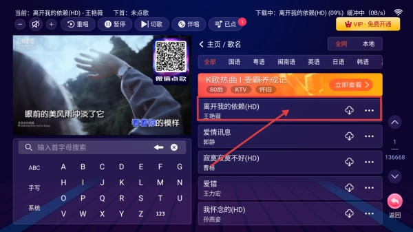 在歌曲列表中,找到《离开我的依赖HD》这首歌并点击,进入播放准备阶段。