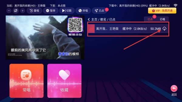 点击歌曲右侧的播放或缓存图标,即可开始播放或缓存该歌曲。