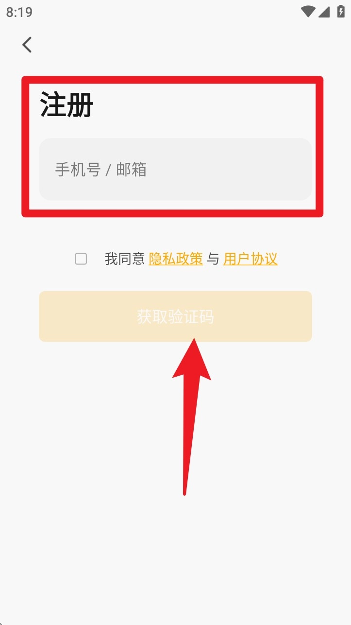 打开ROJECO应用程序,初次使用时需要输入手机号码或者电子邮箱来注册账号,在勾选相关协议之后获取验证码并完成验证步骤。