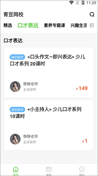 青豆网校是一个专注于直播课教学的平台,平台汇聚了大量优质课程项目,均由精选名师在线授课,助力用户通过青豆网校获取更丰富的知识。同时,平台还提供每节课的录像内容,方便用户随时随地方便地进行回放复习。此外,平台上还有超多类型的课程可供用户挑选,能有效帮助用户快速提升自身能力。