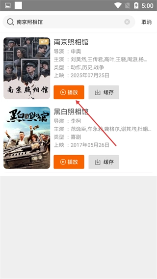 3、于搜索结果里,点击《南京照相馆》的“播放”按键。