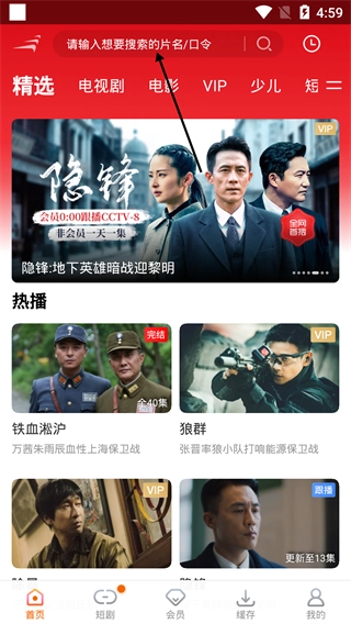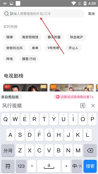 1. 轻点页面顶端的搜索栏,即可进入搜索界面。