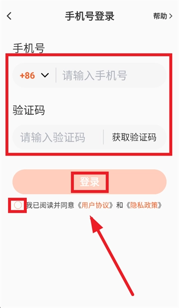 当您进入手机号登录页面,在相应位置输入手机号与验证码,同时勾选“我已阅读并同意《用户协议》和《隐私政策》”,最后点击“登录”按钮,就能完成登录操作。