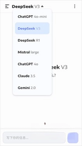 2、若你希望感受不一样的AI接口,点击DeepSeekV3后的三角形图标,即可便捷切换,挑选最契合你的功能。