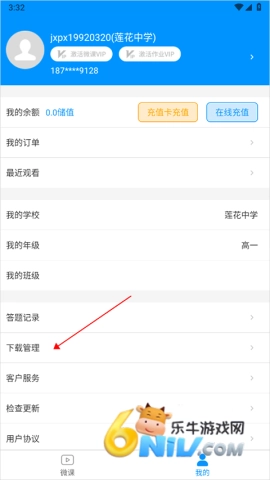 先启动新教育学生端应用并完成登录操作,接着进入个人中心页面,找到位于页面上方的作业VIP激活入口(即图示红色箭头标注的位置),最后在弹出的输入框内填写教师发放的专属账号与密码即可。
