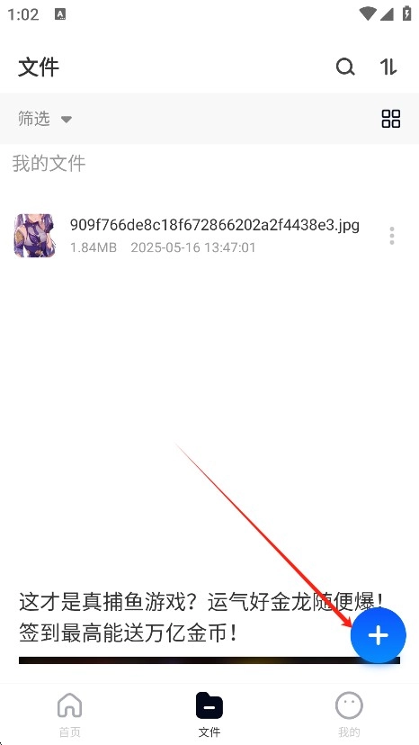 用户只需进入文件区域,点击界面右下角的加号按钮,即可启动文件上传流程。