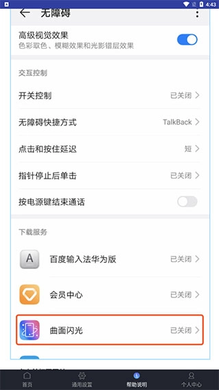 用户需在“服务”里找到“曲面闪光”软件并点击。