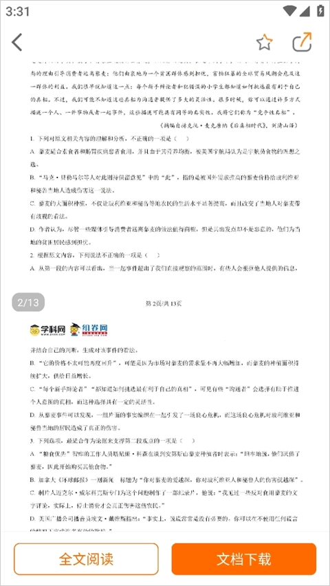 用户可挑选目标试卷,随后点击对应“文档”按钮。