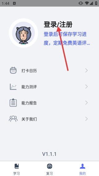 用户接下来会进入到个人中心页面,紧接着需要点击登录注册的按钮。