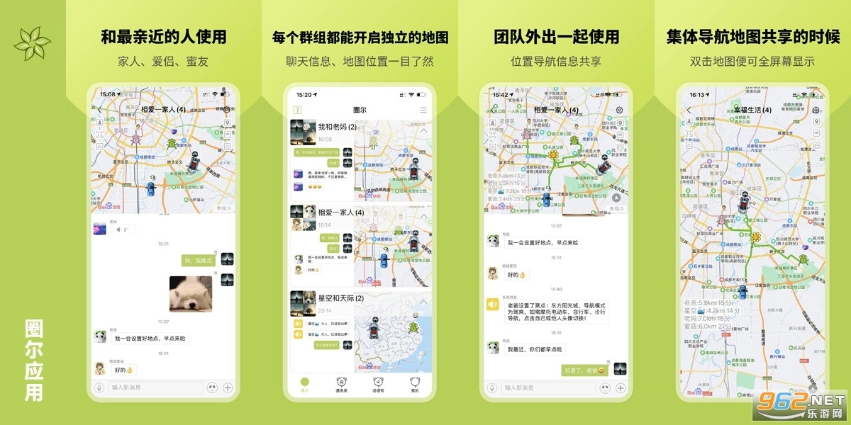 ,群成员随时都能看到彼此的位置。群里只有家人和亲密伙伴,没有喧闹,也没有陌生人,是一个安静的专属社交空间。和最亲近的人使用