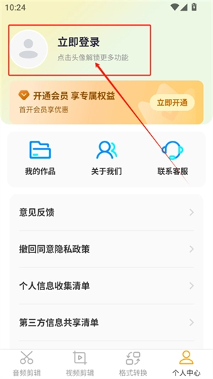 点击右下角个人中心,然后在点击立即登录