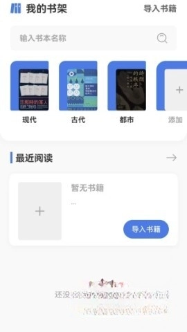 1、第一步,打开软件并进入主页,于最近阅读板块里寻找到“导入书籍”这一选项,接着点击该选项进入。