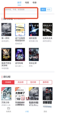 1. 进入首页,点击输入框,在其中输入关键词,以此检索想要的小说资源。