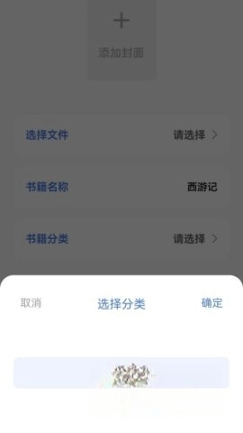 2. 在书籍导入界面,能够添加封面、挑选文件以及填写书名等相关信息。