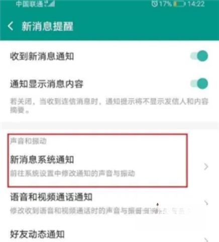 第三步:点开新消息提醒,在其中挑选新消息系统通知。