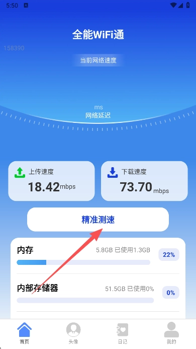 1、进入本站并安装后,来到首页,点击精准测速。