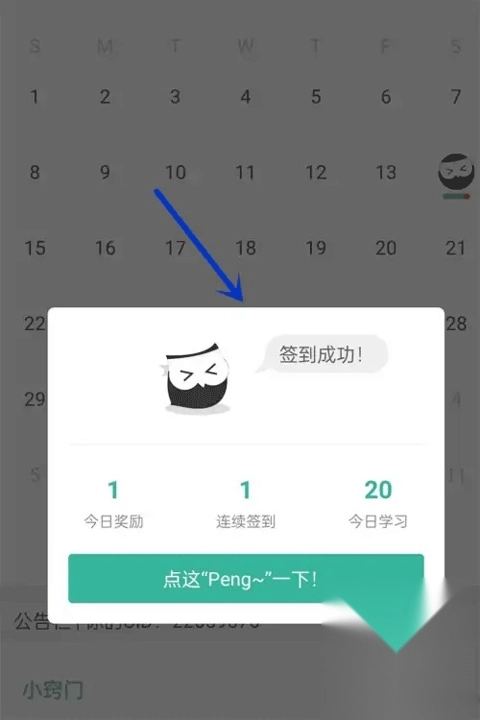 完成当天的学习任务后,会弹出一个签到界面,具体可参考图示。