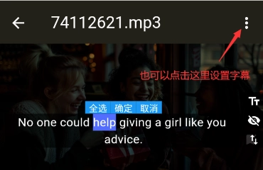 我们也可以点击右上角的菜单按钮设置字幕。
