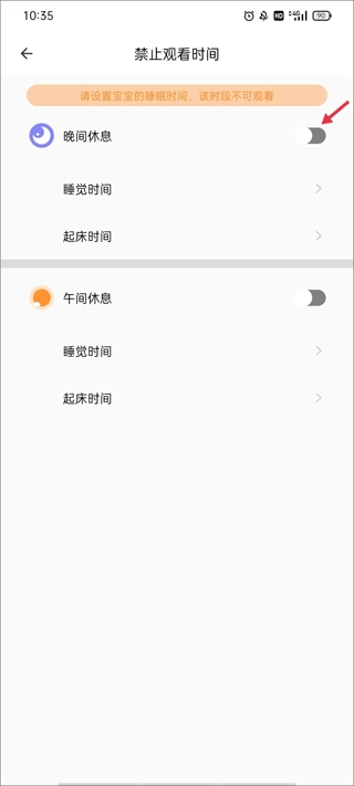 设置时间段:您将看到两个可进行设置的时间段,以晚间休息这一情况为例,点击即可开启该功能。