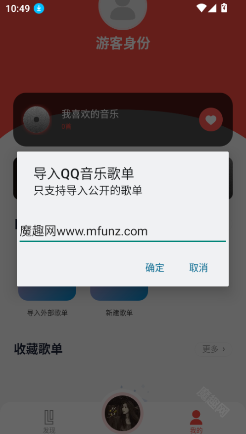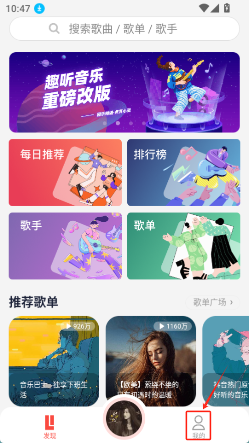 在魔趣网(mfunz.com)趣听音乐,安装完成后打开应用,点击底部的【我的】选项