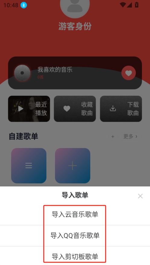 目前支持导入云音乐歌单、QQ音乐歌单以及剪切板歌单,您可以根据需求点击对应的选项。