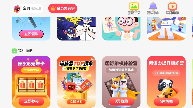 有道卡搭是专注于素质启蒙的教育平台,平台上汇聚了众多精心打造的王牌内容,涵盖围棋、国际象棋、编程、乐高、科学、美术等多个领域。要是您家中有适龄的孩子,不妨让他们通过有道卡搭进行学习——这里的课程既有趣味性又富有创造性,还有海量互动视频与有声故事,能让孩子沉浸其中,尽情享受学习的乐趣!