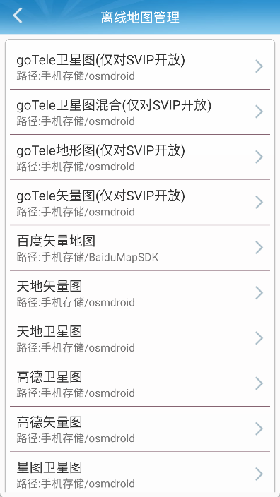 支持离线地图,右边切换框可选择地图显示方式。
