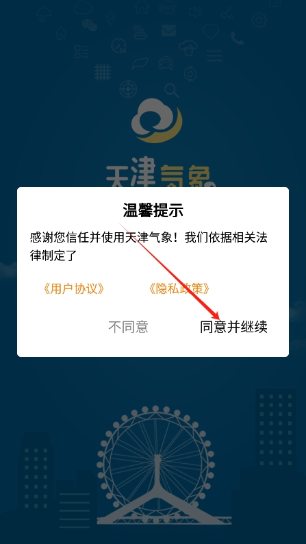 打开天津气象后,请阅读并同意《天津气象用户协议》。