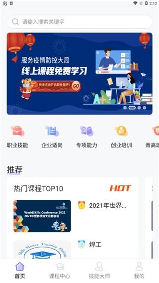课程中心提供多种职业技能学习;