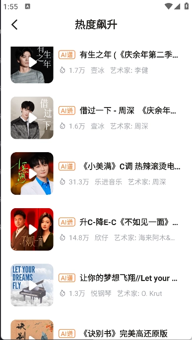 可以借助预览钢琴曲谱的排名信息,迅速定位到需要的曲谱内容。