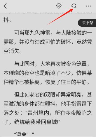 在小说详情页的空白区域轻点一下,接着在页面顶部找到那个耳机形状的图标。