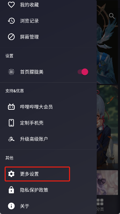 在随即弹出的侧边栏中点击“更多设置”选项。