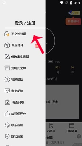 在左边的弹窗中选择“死之钟锁屏”选项。