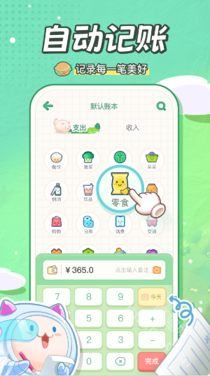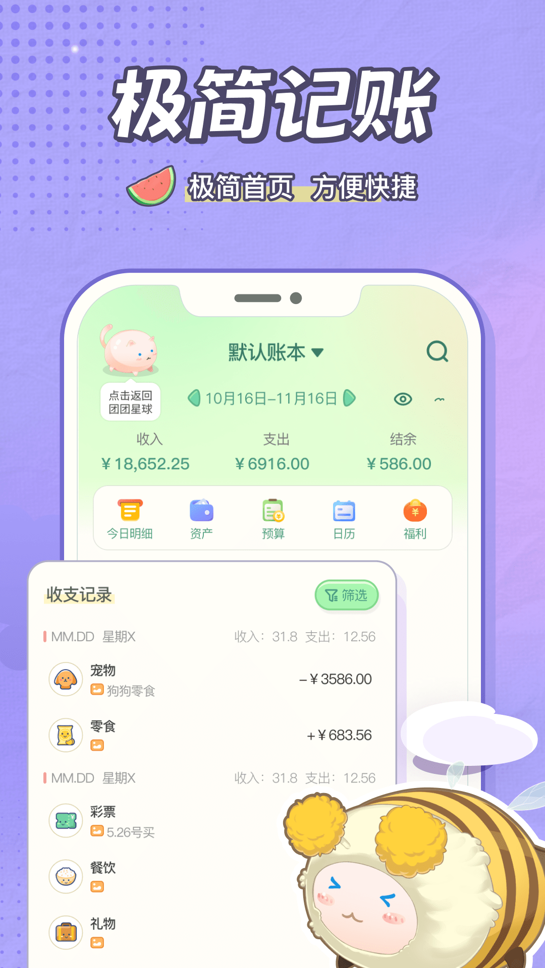 可爱的记账小伙伴: 让团团陪你记录每一笔收支吧,还能通过赚食物来奖励它,让记账变得更有趣~