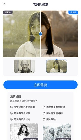 根据照片的受损情况选择对应的功能,点击“老照片修复”