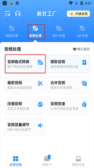 软件界面涵盖视频处理、音频处理、图片处理等功能模块,下面以音频处理功能为例进行说明。