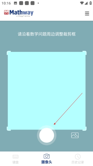 1. 进入摄像头界面后,能够【通过调整裁剪框拍摄数学问题】,进而开启解题流程。