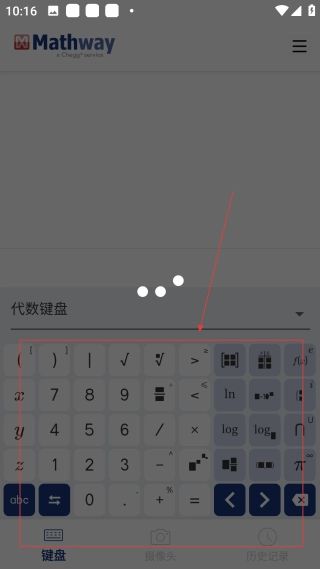 2. 当进入键盘界面后,能够借助【代数键盘输入数学符号与数字】,以此辅助解决数学问题。