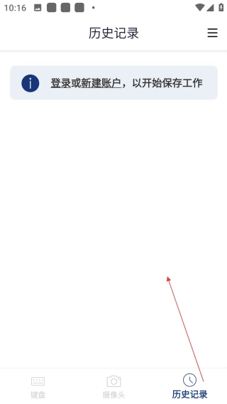 3、进入历史记录界面,能够【登录或新建账户,保存解题工作】,对学习数据进行管理。