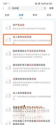 第二步:在相应位置输入“查成绩”,然后执行搜索操作。