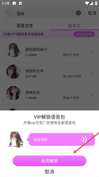 在搜索结果里找到目标语音包并点击它,就会弹出这个语音包对应的操作窗口。